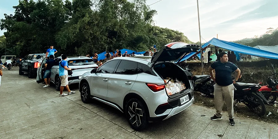 Early in the morning, a convoy of 24 BYD vehicles, including the Sealion 6 DM-i, Sealion 5 DM-i, Shark 6 DMO, and Atto 3, set out from Cebu City loaded with bottled water, food, tents, blankets, medicines, and toiletries. The goal was simple: reach as many affected families as possible, as quickly as possible.